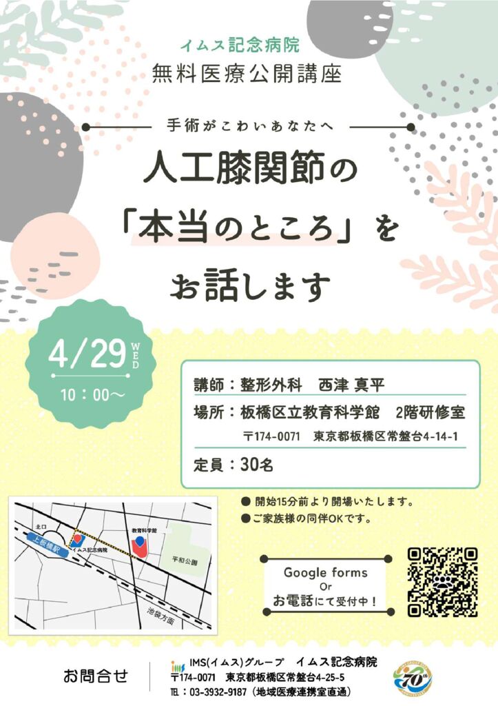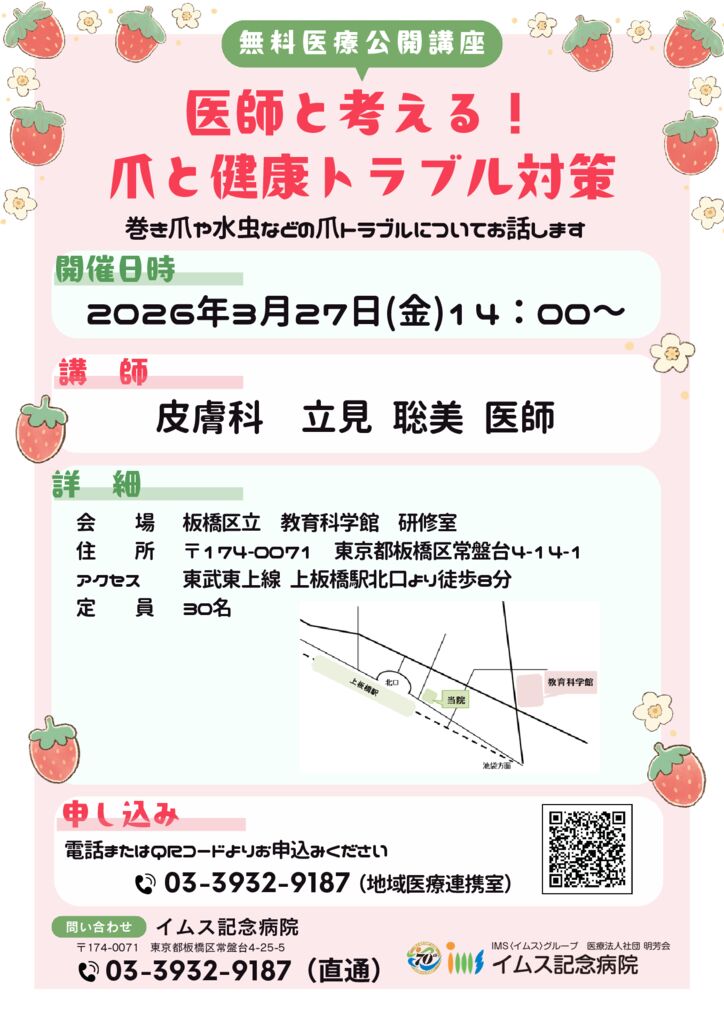 イムス記念病院では、地域の皆様や患者さんならびにそのご家族を対象として、公開講座の開催や地域の団体などへ講師の派遣をいたしております。講座によってお申込み方法が異なりますので、ご希望の講座の案内をご参照いただきお申込みください。 皆様の参加をお待ちしております。