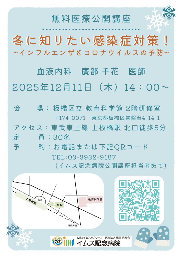 今回の講座は「今だから伝えたい!インフルエンザの話」のテーマで薬剤部 中村が講師を務め、板橋区中台にある中台ふれあい館にて、席数を20名分までに制限し開催しました。