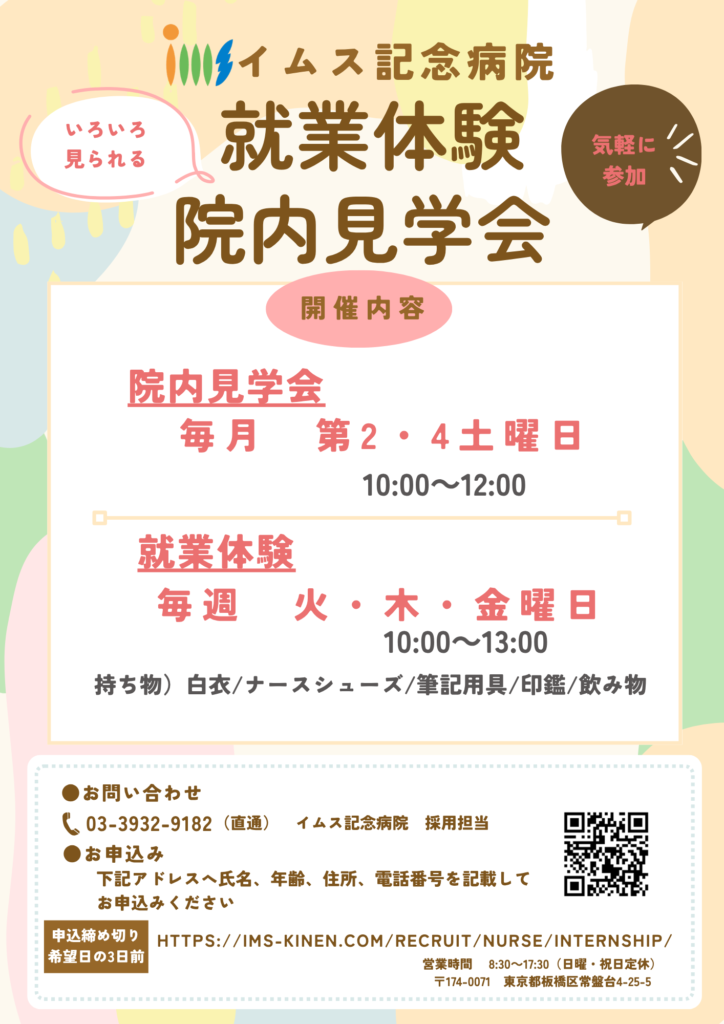 バイタルサイン測定、清潔ケア、移送、救急対応などの体験または見学